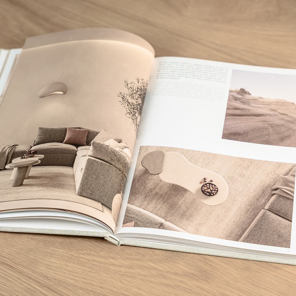 A journey through warm and inviting spaces, where organic forms, fine materials, and handcrafted finishes coexist. Modular sofas that adapt to your lifestyle, tables sculpted from microcement, natural woods, and marbles, beds that integrate functionality and design, and lighting that transforms every corner into a sensory experience.