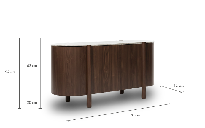 Lily sideboard in different wood finishes with a travertine marble top