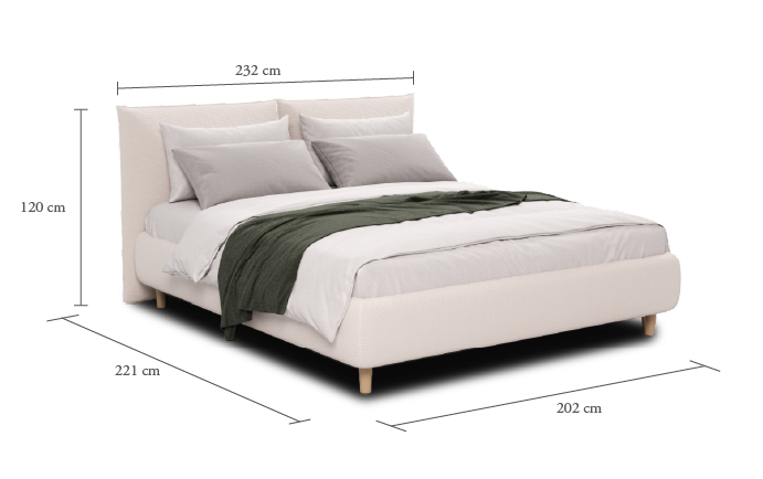 Delos bed with custom upholstery for a 200 x 200 cm mattress