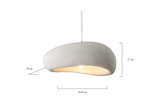 Available in two sizes to suit different scales, Moon maintains balanced proportions and an easy-to-integrate profile. In its larger format, the body describes approximately89 × 74 × 57 cmIt has a sculptural presence that doesn't overwhelm and allows it to be used alone or in a composition.E27 socket, with installation forindoor (IP20) and 220–240 V, accepts opal bulbWarm LED (2700–3000 K)For even and comfortable lighting; the fixture is not dimmable by default. These specifications ensure compatibility and ease of installation in homes and high-traffic areas.Unika Living+1