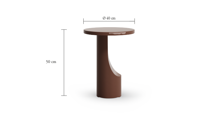 Made of cementhigh glossIn dark brown, it offers a firm surface for placing books, a cup, or a lamp. Its scale is comfortable next to the sofa, and it works well alone or in pairs to create a dynamic arrangement.