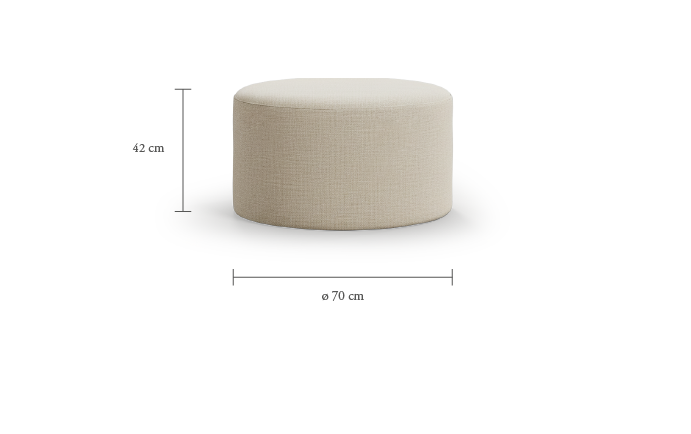 A versatile, compact pouf, designed forindoor useIts friendly shape and customizable upholstery allow it to be integrated into living rooms, bedrooms or passageways, providing extra seating and leg rest.