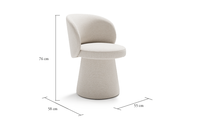 The Aura upholstered chair combines structural simplicity with an enveloping presence. Its curved silhouette gently adapts to the body, offering aGenerous comfort without sacrificing visual lightness.