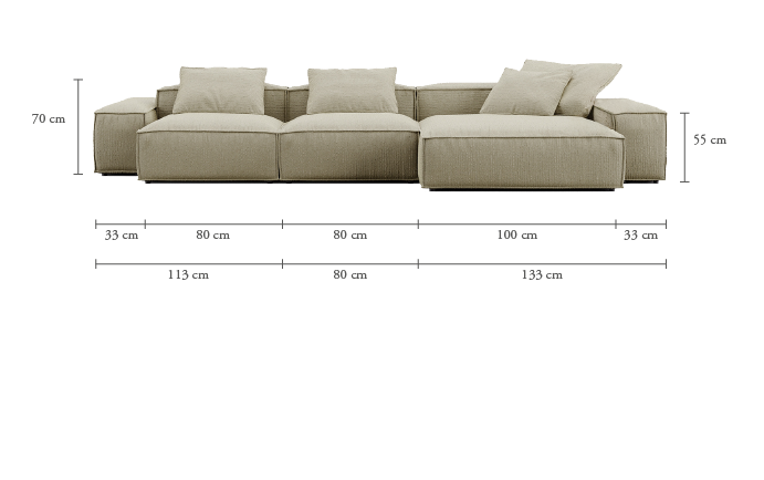 The Tokyo sofa is built with a solidsolid pine structure coated with polyurethanein various thicknesses and densities, which provides durability and stability.seatingThe removable covers include 35 kg HR foam and a cover with a down and fiber blend for plush, enveloping comfort.backupsThese duvets, also removable, combine a Supersoft base with a down and fiber cover, offering extra softness.suspension, with zig-zag springs and recycled webbing (10-year guarantee), it reinforces comfort and resistance.