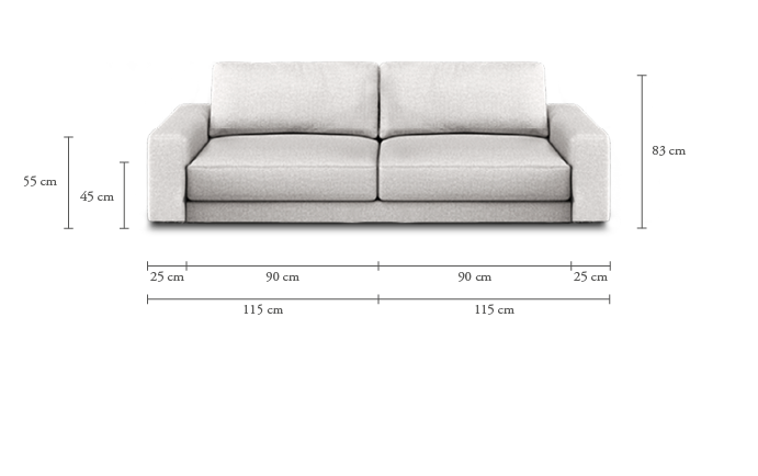 The Montreal 4-seater sofa is made withsolid pine structure coated with polyurethanewhich gives it great solidity. TheseatingThe 35 kg HR foam mattresses with a down and fiberfill cover offer a soft and comfortable feel.backupsWith the same filling, they have removable covers for easy maintenance.suspensionMade of zigzag springs and recycled rubber webbing, it has a 10-year guarantee to ensure durability.