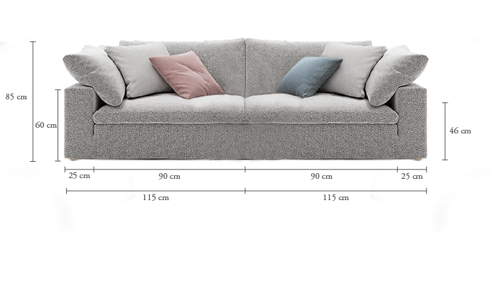 The Rio 2-seater sofa is made with asolid pine wood structure covered with polyurethanein varying thicknesses and densities, providing stability and resistance. The seats, completelyremovable covers, include aHR 35 kg polyurethane rubber baseand atopper filled with feather mixed with fiber, which generate acloud effectSoft and comfortable. The backrests, too.removable coversThey are made up of cushions offeather and fiberoffering soft, enveloping support. The suspension ofzigzag springs and recycled rubber webbing(with a 10-year warranty) ensures comfort and long-lasting durability.