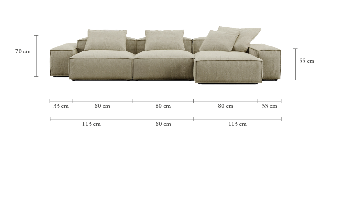 The Tokyo sofa is built with a solidsolid pine structure coated with polyurethanein various thicknesses and densities, which provides durability and stability.seatingThe removable covers include 35 kg HR foam and a cover with a down and fiber blend for plush, enveloping comfort.backupsThese duvets, also removable, combine a Supersoft base with a down and fiber cover, offering extra softness.suspension, with zig-zag springs and recycled webbing (10-year guarantee), it reinforces comfort and resistance.