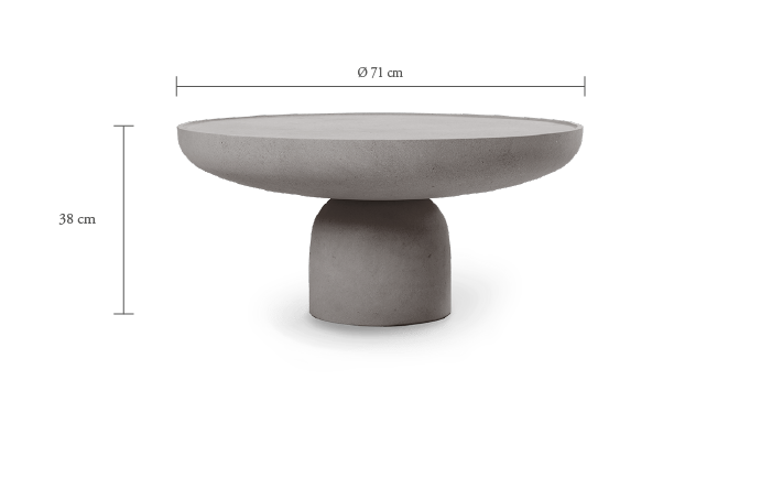 La mesa de centro Rin Alta está elaborada en microcemento, un material robusto y de acabado liso que aporta un toque contemporáneo y minimalista. Disponible en acabado natural o gris, su formato alto y diseño circular la convierten en una pieza versátil para salones modernos y mediterráneos.