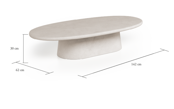 Ganges es una mesa de centro que hace del microcemento un lenguaje sereno. Su silueta rectangular, limpia y continua, reduce el ruido visual y crea un foco natural para conversar, leer o simplemente dejar que la luz recorra las texturas del salón. Funciona como ancla silenciosa: ordena el plano central y deja respirar la arquitectura con una presencia contenida y honesta.