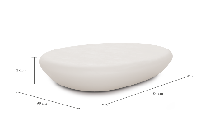 Oasis Baja lleva la materia mineral al corazón del salón con una forma suave y continua que baja el ruido visual y ordena la escena. Su silueta redondeada, de lectura serena, crea un punto de encuentro natural para conversar, leer o simplemente dejar que la luz recorra las texturas del espacio con un brillo controlado.