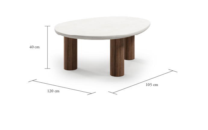 Mesa Vilma de centro de microcemento en acabado piedra liquida en color natural
